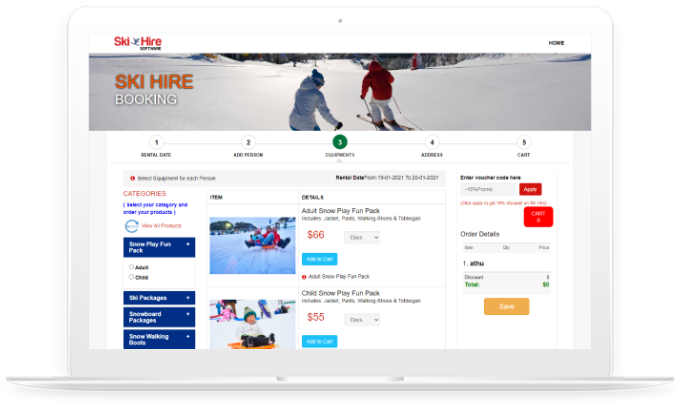 Increase your revenue using the power of the internet and online business model. Your customer can order products online in advance before they reach your ski hire, reduce the mad rush during peak seasons and increase your operational efficiency.